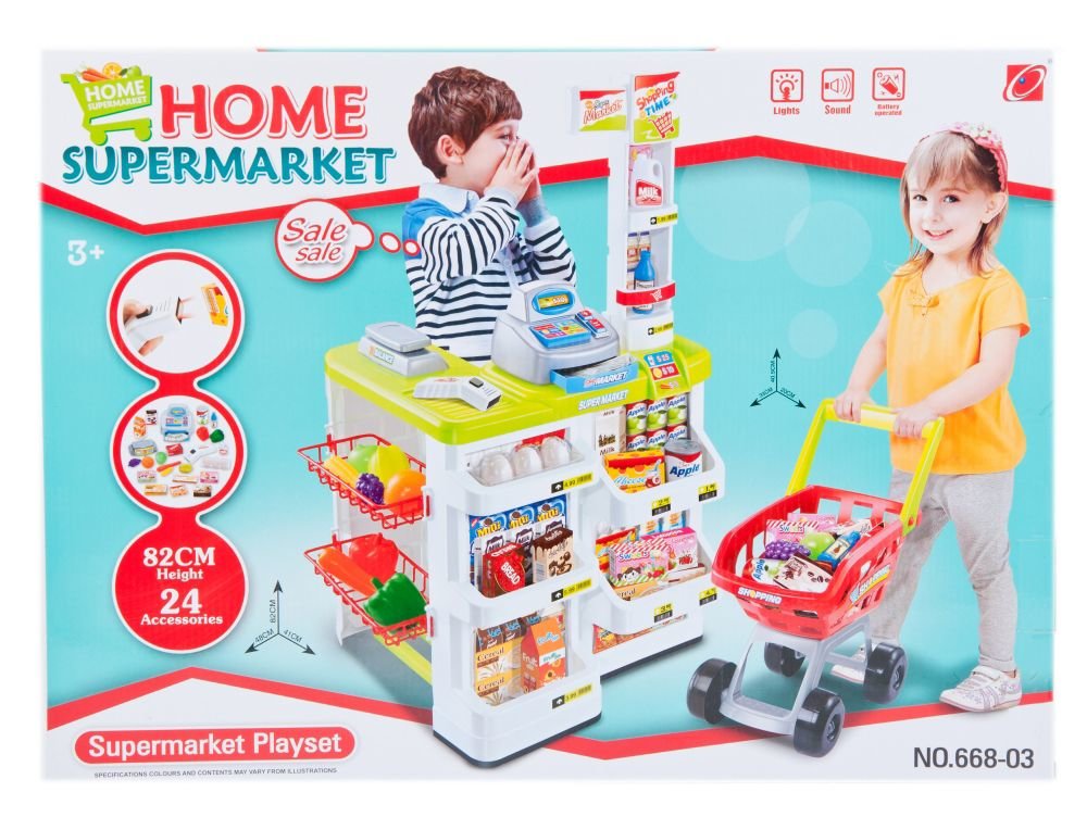 Výhody produktu: Fantastická sada supermarketů MEGA CREATIVE nejen naučí vaše dítě znát konkrétní produkty, ale také jak používat platební prostředky, porozumět pravidlům fungování ve společnosti a dozvědět se o rodinných povinnostech! Sada obsahuje pokladnu s pultem v obchodě. K pokladně je připojen skener, díky němuž může dítě produkty naskenovat a cítit se jako skutečný prodejce. Stačí stisknout tlačítko a skener přehraje charakteristický zvuk skenování produktu. Sada obsahuje také potraviny, zeleninu a ovoce a také potraviny. Sada se skládá z 24 prvků. Sada je vyrobena z plastu. Určeno pro děti od 3 let. Vyžaduje 2 x baterie AALR06 - nejsou součástí dodávky. Rozměry balení (D x V x H) [cm]: 60x44x19 Hmotnost balení (kg) 4,89 kg, rozměry produktu supermarket & nbsp; (D x V x H) (cm) 48x82x41, hmotnost produktu (kg) 2,56 kg & nbsp; Rozměry produktu v; (D x V x H) (cm) ; 30x40x20, hmotnost produktu (kg) & Nbsp; 0,70 kg; Baleno v lepenkové krabici.