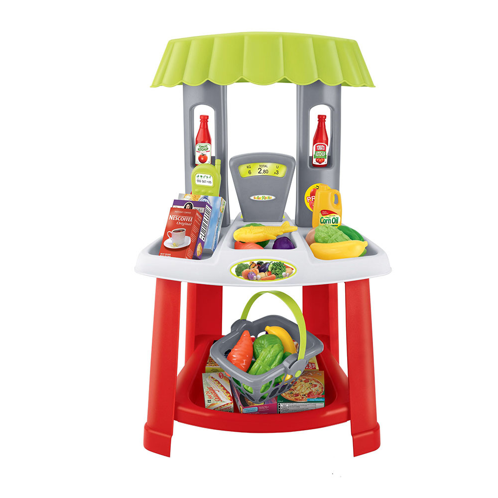 Parádní supermarket v barevném provedení. Sada obsahuje stánek, košík a nechybí ani makety potravin, ovoce, zelenina a další (23 kusů). Rozměry supermarketu: 61 x 27 x 36 cm. číst celé