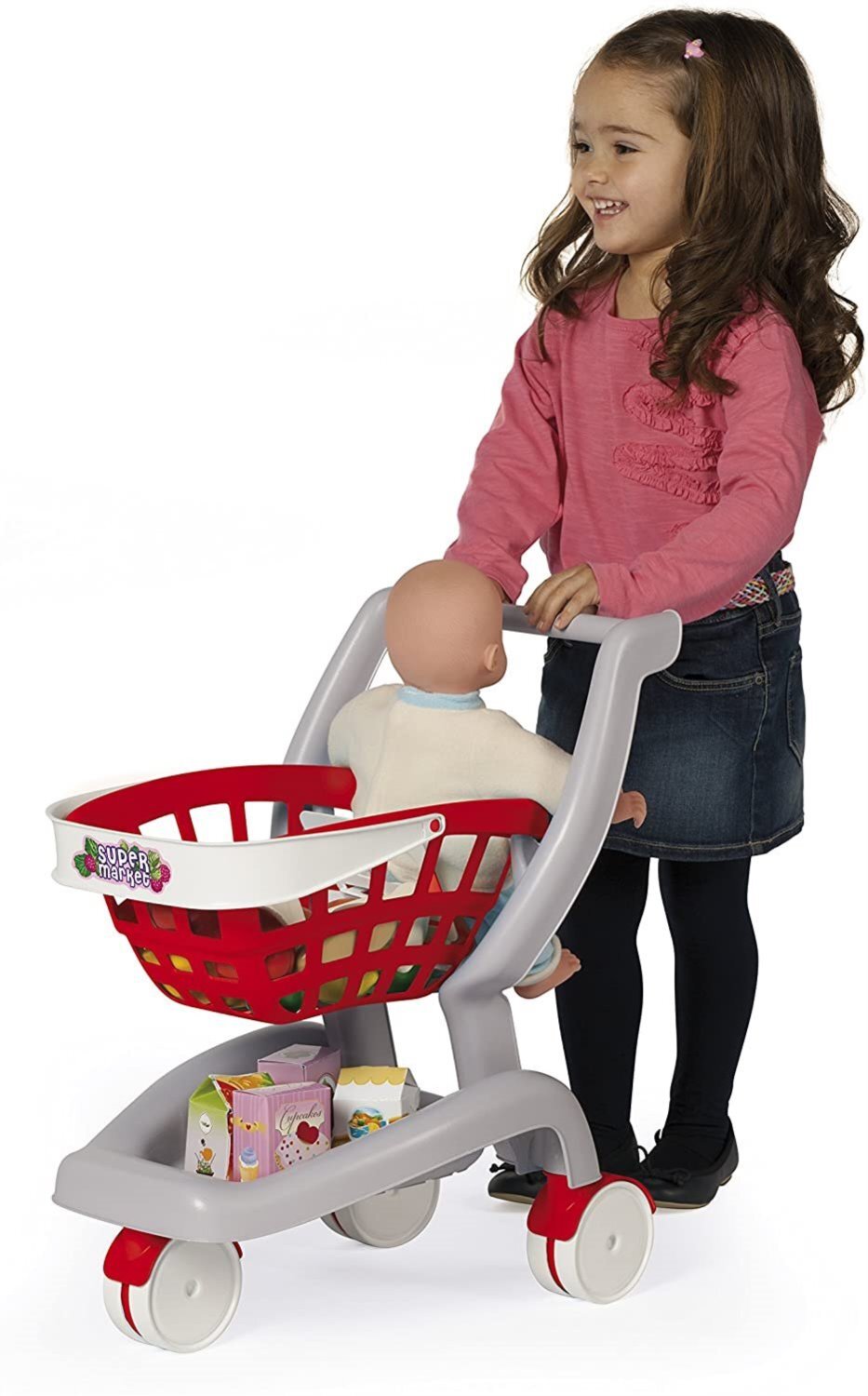 Nákupní vozík 2v1 od CHICOS -  nejlepší ke všem nákupům. Má sedátko pro panenku a lze z něj udělat košík. Velký nákupní vozík 2v1 je dokonalou hrou na nakupování. Součástí hračky je 18 kusů plastových a papírových potravin.  Vhodné pro děti od 3 let. Rozměry složeného výrobku: 74 x 46 x 34 cm číst celé