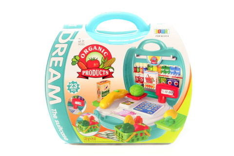 Nákupní sada obsahuje: 1x kufřík o velikosti cca 24x18cm, 7x zelenina, 1x skener, 1x nákupní košík, 1x váha, 1x počítadlo. Věk 3+ číst celé