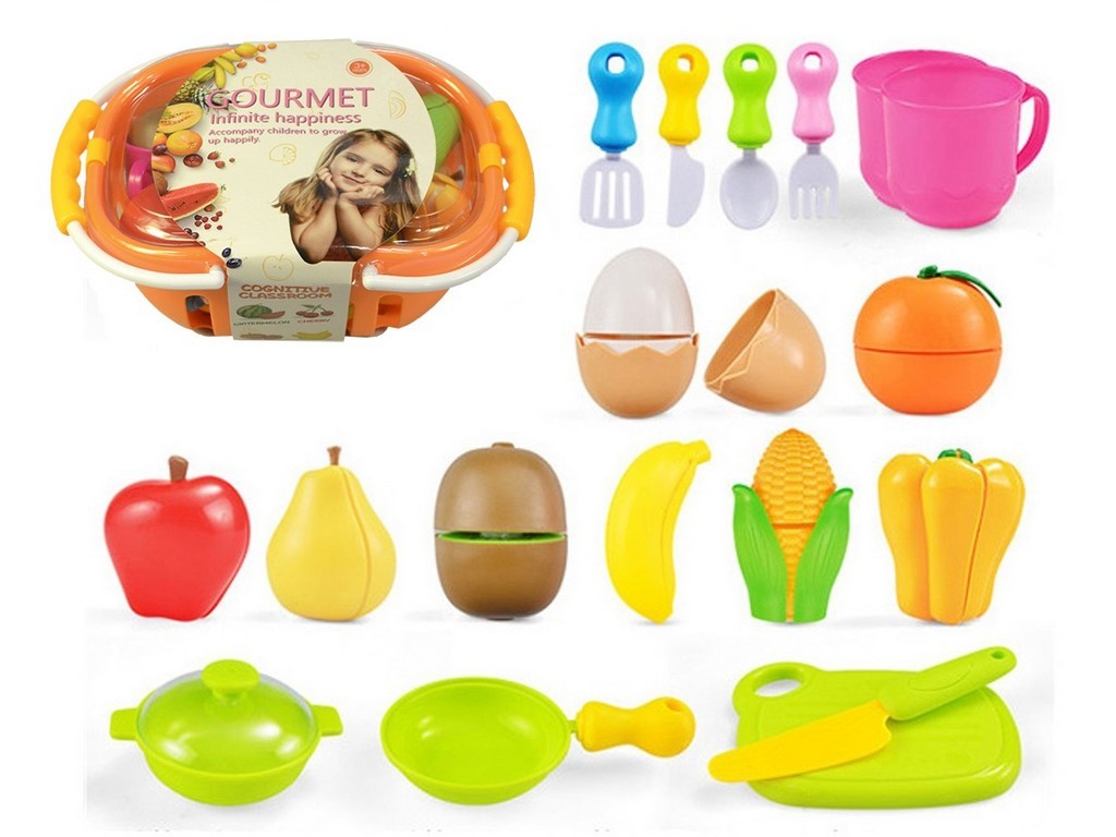Nákupní košík s ovocem a doplňkyHračka je určena pro děti 3+.Rozměr hračky je 10x24x17cm.Materiál hračky je plast.Balení hračky je karta.