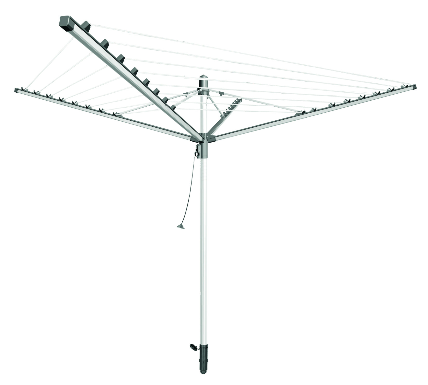 Sušiak má odnímanú spodnú časť centrálnej tyče pre ľahký a kompaktný transport sušiaku (o 20% menšia dĺžka pre transport ako pri štandardnom vonkajšom sušiaku). Záruka 3 roky.