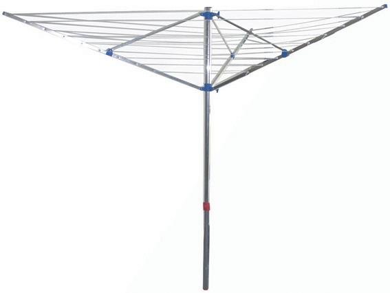 Venkovní zahradní sušák vhodný na jarní a letní sušení prádla na zahradě domu nebo chatky. Jednoduchý systém uchycení zahradního sušáku do země umožňuje kdykoli změnu místa nebo uložení před zimním obdobím. Rozpětí sušáku zajišťuje proti složení. Délka šňůr je 38 m. Šňůry jsou vyrobeny z vysoce kvalitního PVC lanka, které je velmi snadno čistitelné hadrem. Nosnost 20kg. Rozměry - 215 x 185 x 185 cm.