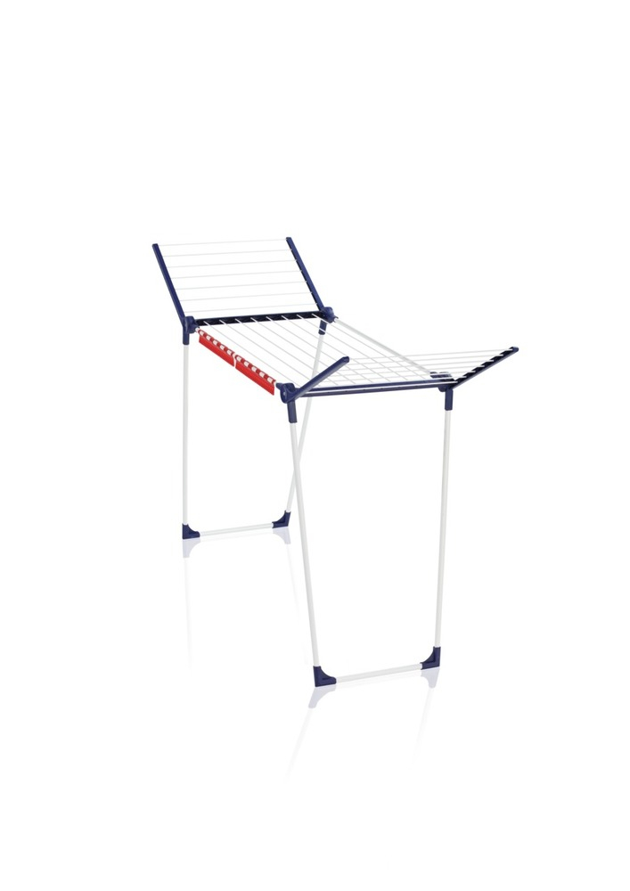 stabilní sušák na prádlo s výklopnými bočnicemi, ideální pro vnitřní i venkovní použití, šířka sušáku je pouhých 55 cm, tudíž se s ním i v rozloženém stavu snadno manipuluje, 16 m sušící plochy = až 1,5 pračky prádla, výška sklápěcích bočnic 107 cm, možnost zavěšení dlouhých kusů oděvů, včetně 2 easyclipů na sušení drobného prádla, záruka 5 let