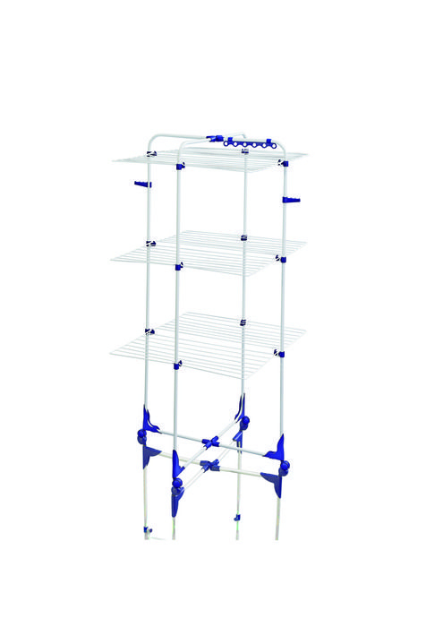 praktický patrový sušák na prádlo, možnost umístění do sprchového koutu, 3 patra nad sebou pro úsporu místa, všechna patra jsou sklopná, možnost zavěšení dlouhých kusů oděvů, 4 integrovaná kolečka, mobilní do všech směrů (360°), dva postranní věšáky na ramínka, na horní straně klip pro zavěšení dalších 6 ramínek, 34 m sušící plochy = až 3,5 pračky prádla, záruka 3 roky