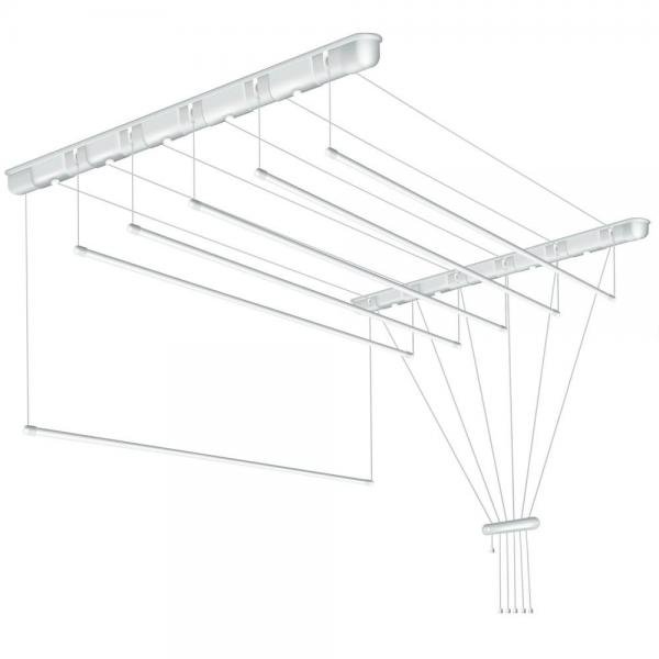 Tento stropní sušák nabízí praktické řešení, jak pohodlně sušit oblečení bez zbytečné námahy a ztráty prostoru. Díky možnosti regulace výšky sušení můžete využít výhod rychlejšího schnutí blíže ke stropu. Každá z ocelových tyčí, potažená odolnou PE folií, se ovládá samostatně, což umožňuje přizpůsobit sušení vašim potřebám. S integrovanými šňůrami o délce 300 cm je manipulace snadná a přehledná.