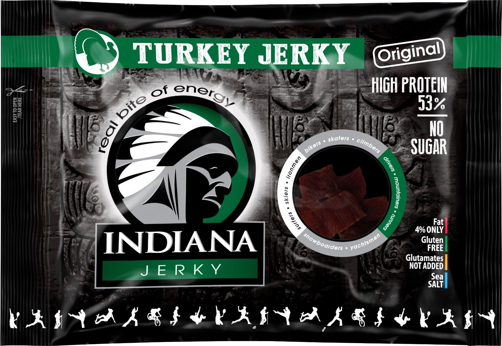 Sušené krůtí maso Turkey je sušené a solené maso prémiové kvality. Jde o proteinový snack a výjimečný zdroj bílkovin s minimem tuků a sacharidů. Navíc si ho můžete vzít kamkoliv na cesty a výlety. Sušené maso je bez obsahu glutamátů a lepku, a má příjemnou chuť díky soli. Vyzkoušejte zdravý a chutný snack, vhodný pro všechny příležitosti.