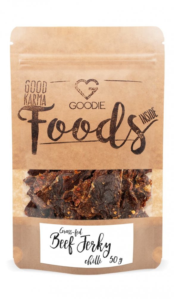 Doplňte proteiny s pikantním sušeným hovězím masem okořeněným špetkou chilli. Použité vysoce kvalitní maso z krav původem z prověřeného českého chovu krmených trávou na pastvinách obsahuje nízké procento tuku a nutričně hodnotné látky. Z hovězího masa získáte esenciální aminokyseliny, které si tělo neumí samo vyrobit, a ještě si pochutnáte na vyladěné ostřejší příchuti kajenského pepře s chilli. S praktickým uzavíratelným balením si hovězí jerky vezmete kamkoliv, kde oceníte rychlou a bílkovinami nabitou svačinu.