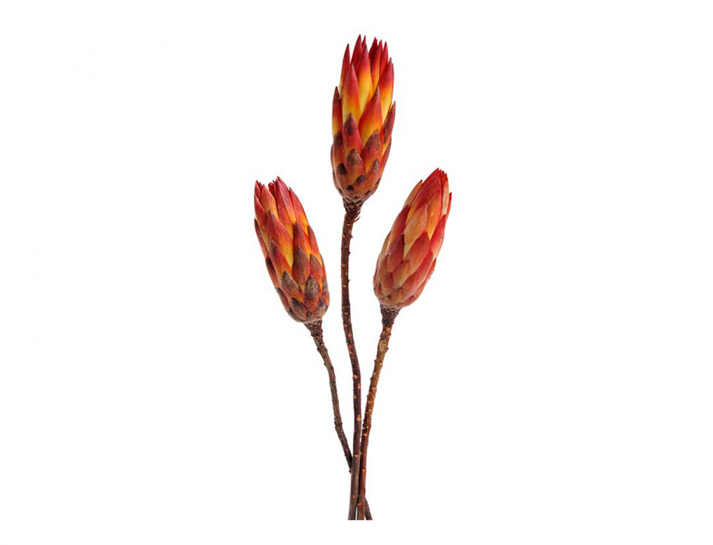 Dekorativní sušiny: protea repens. Africká sušina Repens red má výrazný vzhled, bohatou červenou barvu, dodává dekoracím živý, exotický vzhled, skvěle vyniká na pozadí zelených či neutrálních tónů ostatních sušených rostlin. Přírodní produkt, jeho velikost se může lišit. Stálobarevná. V balení...