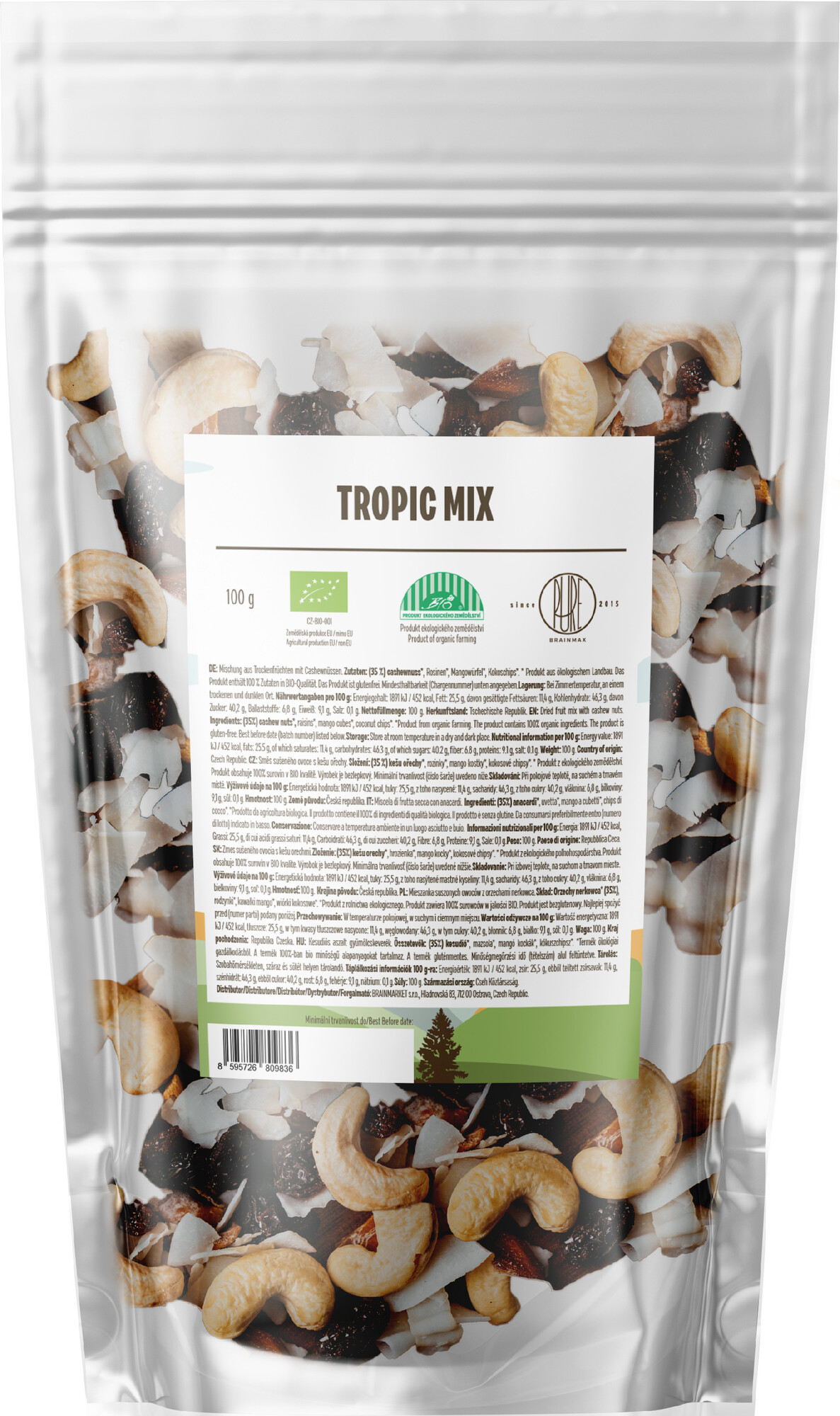 Tropic Mix je perfektní volbou pro milovníky exotických chutí. Můžete jej přidat do snídaňových kaší, jogurtů nebo si ho vychutnat samostatně jako svačinu na cestu. Sladkost manga a rozinek se krásně doplňuje s jemně krémovou chutí kešu ořechů a kokosovými chipsy, které dodávají směsi neodolatelný exotický nádech. Bezlepková směs vás osvěží a dodá energii kdykoliv během dne.