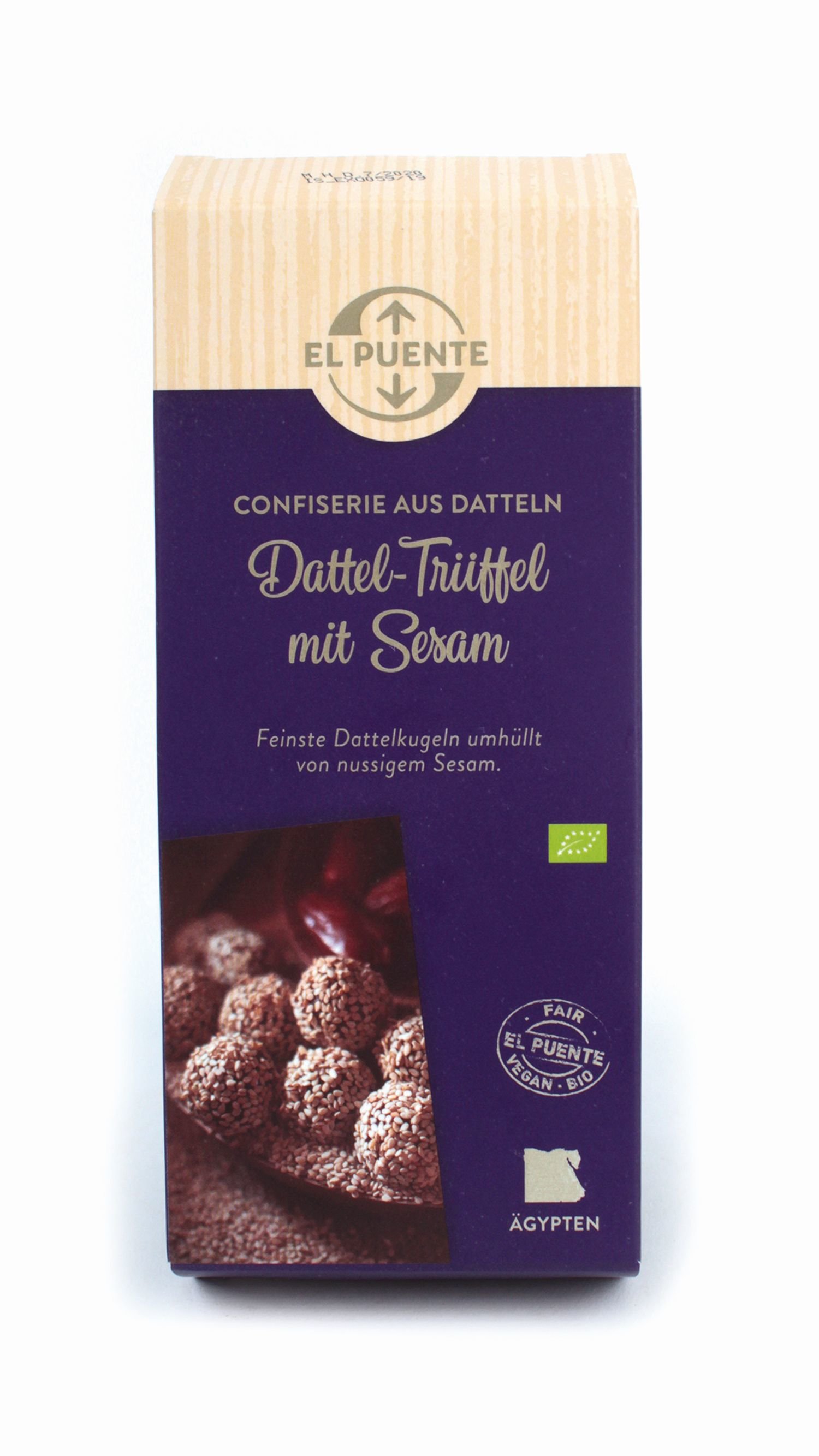 Poctivá fair trade delikatesa složená pouze z bio datlí a bio sezamu bez jakýchkoli dalších příměsí či náhražek a bez lepku. Nepřislazované, přesto sladké, aromatické, ovšem bez umělých aromat. Každá kulička je jiná, všechny jsou ale jen z přírodních surovin. Kompletně vypěstované, vyrobené i zabalené v Egyptě.