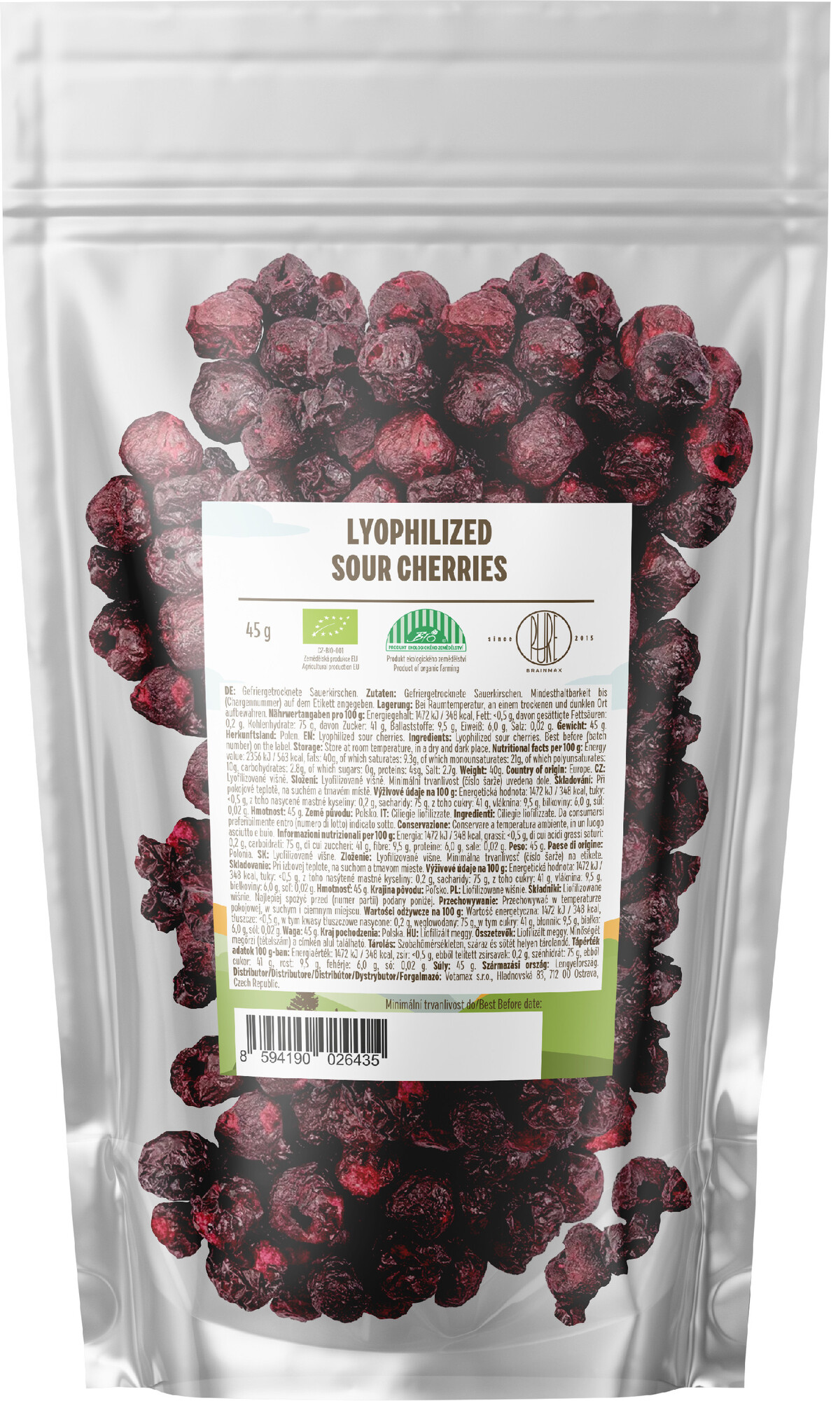 Svěží kyselá chuť je zárukou vysoké dávky vitamínu C. Obsahují také vitamín B čijód, vápník, železo a draslík. Vybrali jsme pro vás višně sušené mrazem v BIO kvalitě, které neobsahují chemii (pesticidy, těžké kovy), neboť jsou vypěstovány v ekologickém zemědělství.