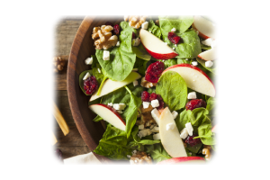 V malé misce si připravte dresink smícháním medu, octu a oleje. Ostatní ingredience smíchejte ve větší míse, polijte dresinkem s podávejte.