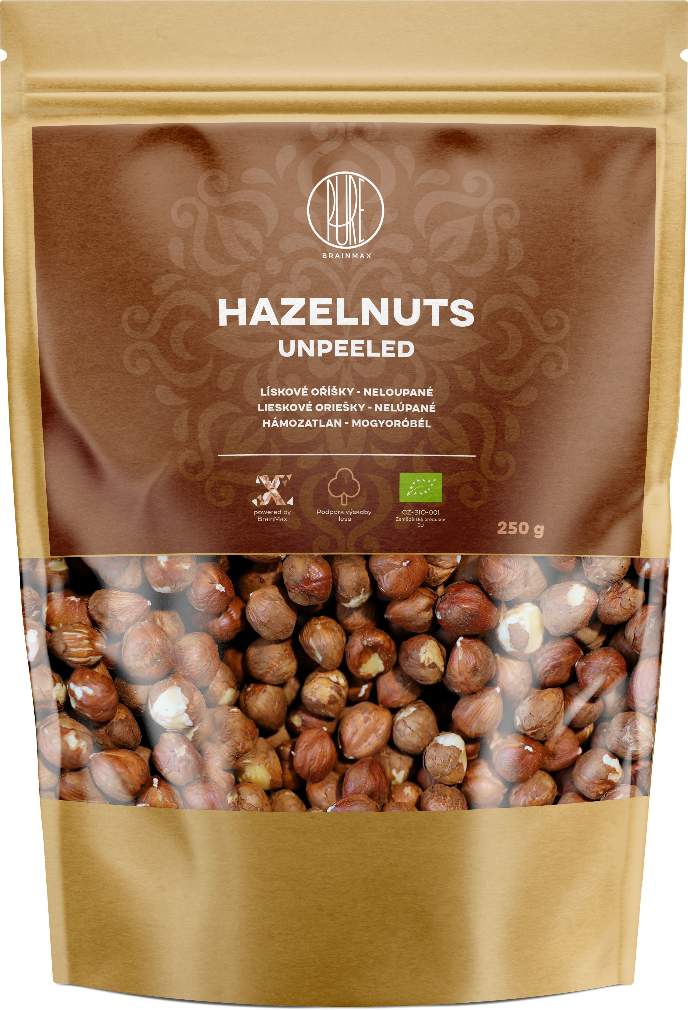 Brainmax Pure Lískové oříšky, neloupané, BIO, 250 g