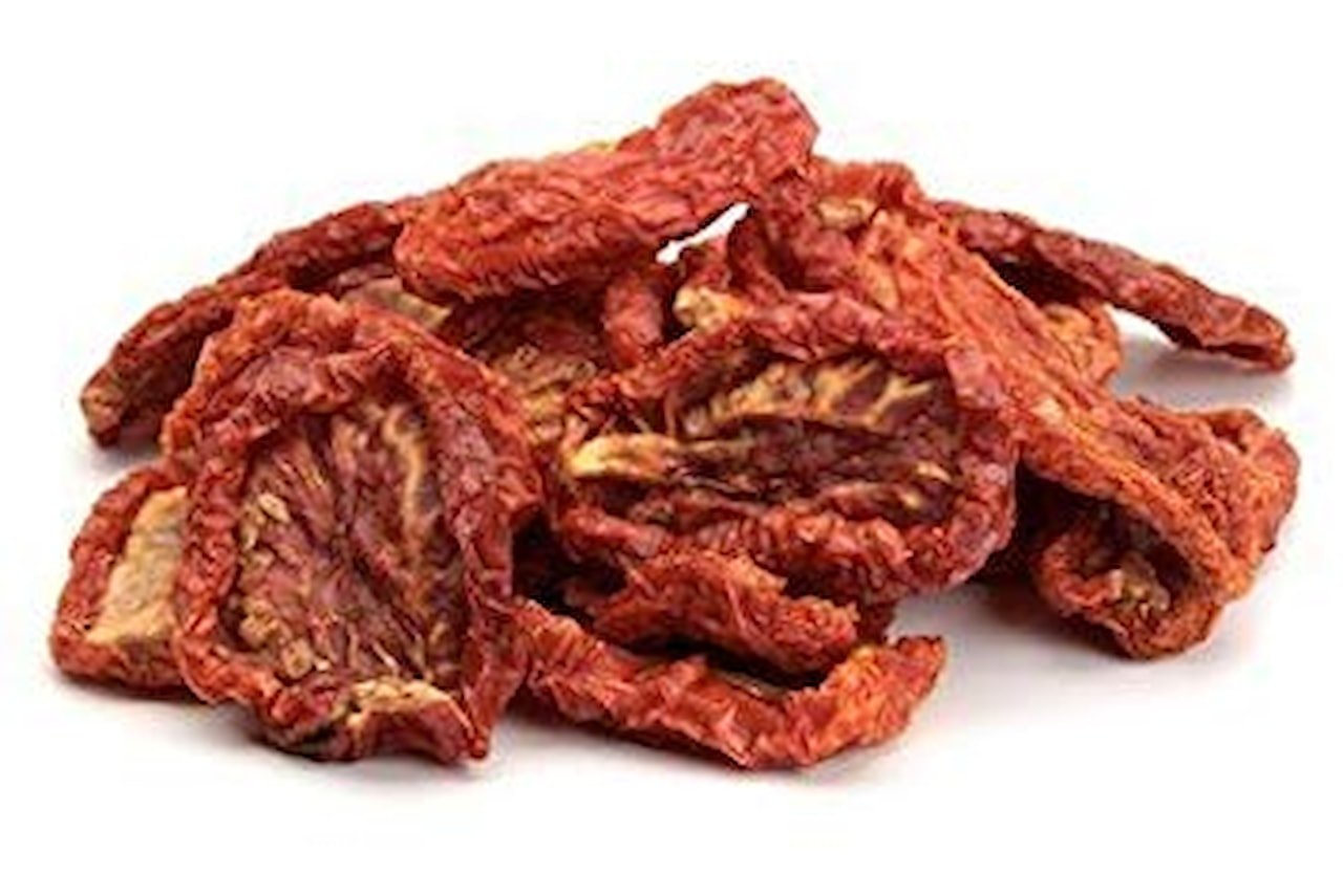 Sušená zelenina jednodruhova. Složeni: Sušená rajčata, sůlSkladujte v suchu při teplotě nejvýše 25 °C a relativní vlhkosti nejvýše 70%. Rajčata jsou rozříznuta podélně na půlky, jsou jemně nasoleny a poté se ponechají pozvolna sušit, tak, aby byli při konzumaci ještě měkké. Konzervovány jsou právě solí. Neobsahují žádná sířidla, ani konzervanty. Jsou velmi zdravá a mají široké použití při vaření těstovin, salátů, masových rolád, špízů atd.