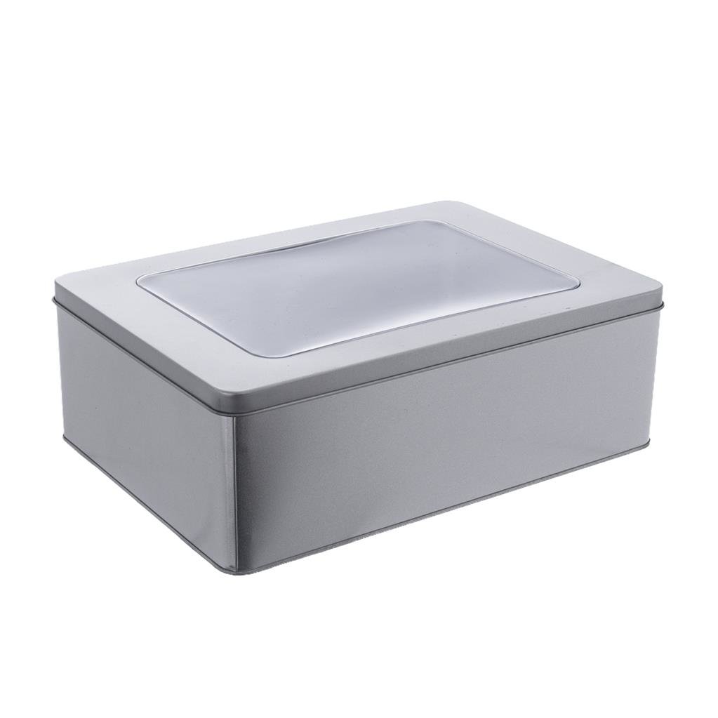 Plechová dóza WINDOW hranatého tvaru nabízí všestranné využití. Můžete ji použít jako krabičku na kosmetiku, make-up či šperky, ale i sušenky, bonbóny a jiné cukrovinky.