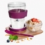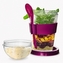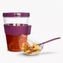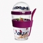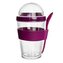 Pohár na svačinu s víčkem, zásobníkem na křupinky a lžičkou v silikonovém držátku. Budete mít pohromadě jogurt či přesnídávku a do něj müsli, lupínky nebo piškoty. Vhodné také na zeleninové a ovocné saláty, studené polévky. Materiál: plast, silikon. Silikonový kroužek poskytuje lepší uchopení pohárku a připevnění lžičky. Rozměry: objem 0,4 l, zásobník na křupinky 0,13 l, pr. 8,5 cm, v. 16 cm.