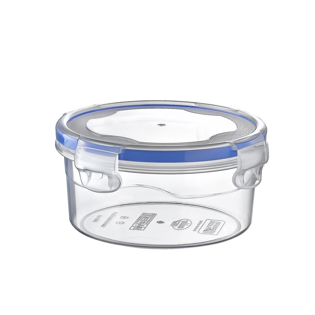 Dóza plastová transparentní se silikonovým těsněním ve víčku. Klipy pro pevné uzavření. Kruhový tvar. Stohovatelná. Vhodná do chladničky, MVT (bez víčka) i myčky na nádobí. Rozměry: objem 0,5 l, průměr 12,5 cm, výška 6,5 cm. NA ULOŽENÍ POTRAVIN A JINÝCH DROBNOSTÍ VYUŽITÍ NEJEN V KUCHYNI DĚTEM NA CUKROVINKY NEBO NA SVAČINU