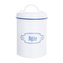 Dóza s víčkem na uložení rýže. Materiál: plech. Rozměry: pr. 11 cm, v. 18,5 cm. číst celé