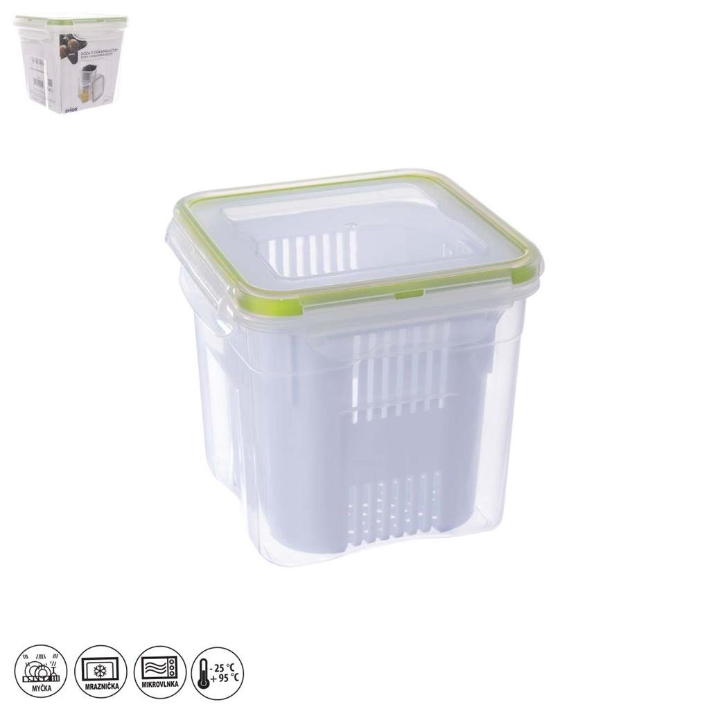 Možnost umístit vnitřní odkapávač do horní části plastové dózy je výbornou vychytávkou, která ulehčuje servírování těchto dobrot - z nakládané pochoutky odkape přebytečný olej a vy ji tak budete moci podávat bez obav ze zašpinění stolu nebo kuchyňské linky. Součástí je také plastové víčko se silikonovým těsněním a zavíráním na pevné klipy.