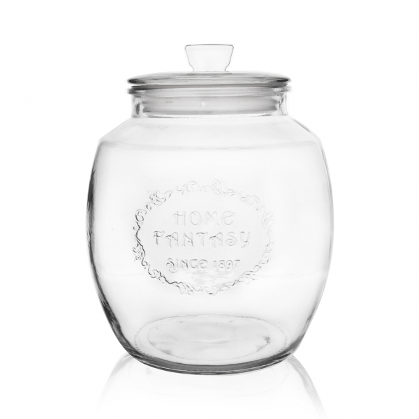 Dóza s víčkem na uložení koření, sušených plodů, bylinek a potravin... Materiál: sklo, plast. Rozměry: objem 2,2 l, pr. 15 cm, v. 19 cm. číst celé