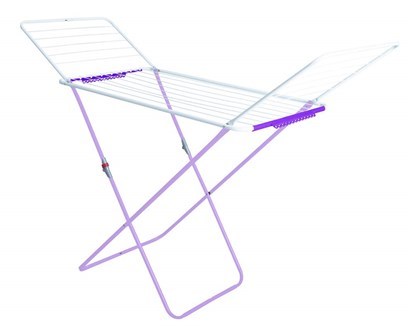 Stabilní přenosný sušák na prádlo nabízí cca 18 metrů sušící plochy, což představuje až dvě plné pračky prádla. Boční křídla jsou vhodná na sušení delšího prádla. Praktickým pomocníkem je držák na sušení ponožek. Velkou výhodou je stabilní konstrukce v barevné kombinaci bílých a barevných částí, doplněných plastovými držáky v odpovídající barvě. Bezpečnému použití napomáhá také dětský bezpečnostní zámek, omezující možnost nechtěného složení a případného pádu.