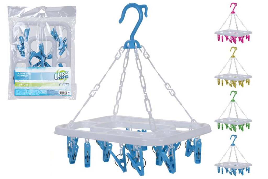 Praktický závěsný sušák na prádlo včetně kolíčků 24 x 31 cm