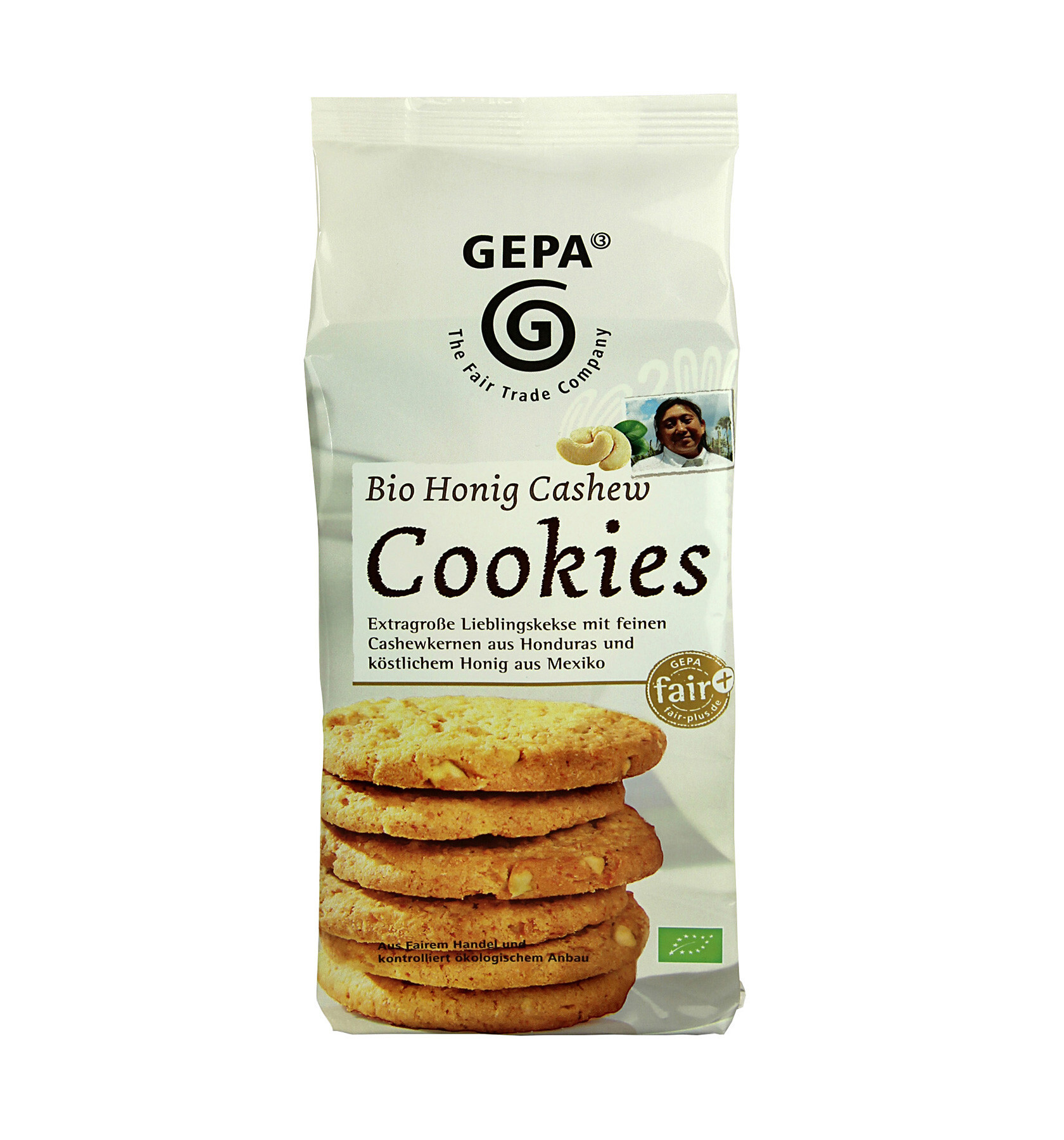 Křupavé, lahodné cookies s kešu ořechy z Hondurasu a medem z Mexika. Suroviny se pěstují podle pravidel ekologického zemědělství a fair trade.