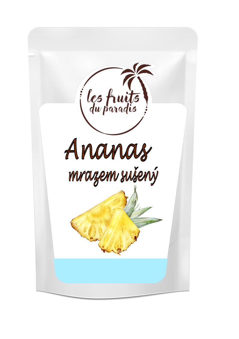 Historie ananasu pochází z doby objevu Ameriky, respektive pro Evropu bylo toto období významné: navzdory tomu, že toto ovoce pochází z Jižní Ameriky, ananas si našel svou cestu na poloostrov Guadeloupe, kde si jej všiml právě samotný Kryštof Kolumbus. Vzhledem evropským kolonizátorům toto exotické ovoce připomínalo borovicovou šišku (anglicky „pine“), a proto se v angličtině ananasu říká „pineapple“. Natož název, který používáme my, pochází původně z jazyka jihoamerických Indiánů, kteří mu říkali „anana“. Kolumbus se tedy rozhodl transportovat ananasy právě k nám do Evropy. V té době si ale ananasy mohl dovolit opravdu jen málokdo - byly drahé a staly se symbolem luxusu.V dnešní době jsou naštěstí mnohem dostupnější. Za to jsme všichni rádi, protože jsou neskutečně zdravé! Ananas obsahuje velké množství vitamínu C. Toto množství závisí na odrůdě ananasu, ale přibližně se nachází cca 40 miligramů vitamínu C ve 100 gramech, což představuje okolo 80 % denní dávky vitamínu C pro jednu osobu. Dále je ananas bohatý na draslík, hořčík a vápník.My jsme si speciálně pro vás připravili lyofilizované (mrazem sušené) kousky těch nejlepších ananasů! Díky této metodě sušení si ananas udrží svou jedinečnou chuť a vy mu určitě neodoláte. Lyofilizovaný ananas můžete přidat do kaší, ovocných směsí nebo si jej vychutnejte s vašimi dětmi jen tak jako zdravou svačinku.