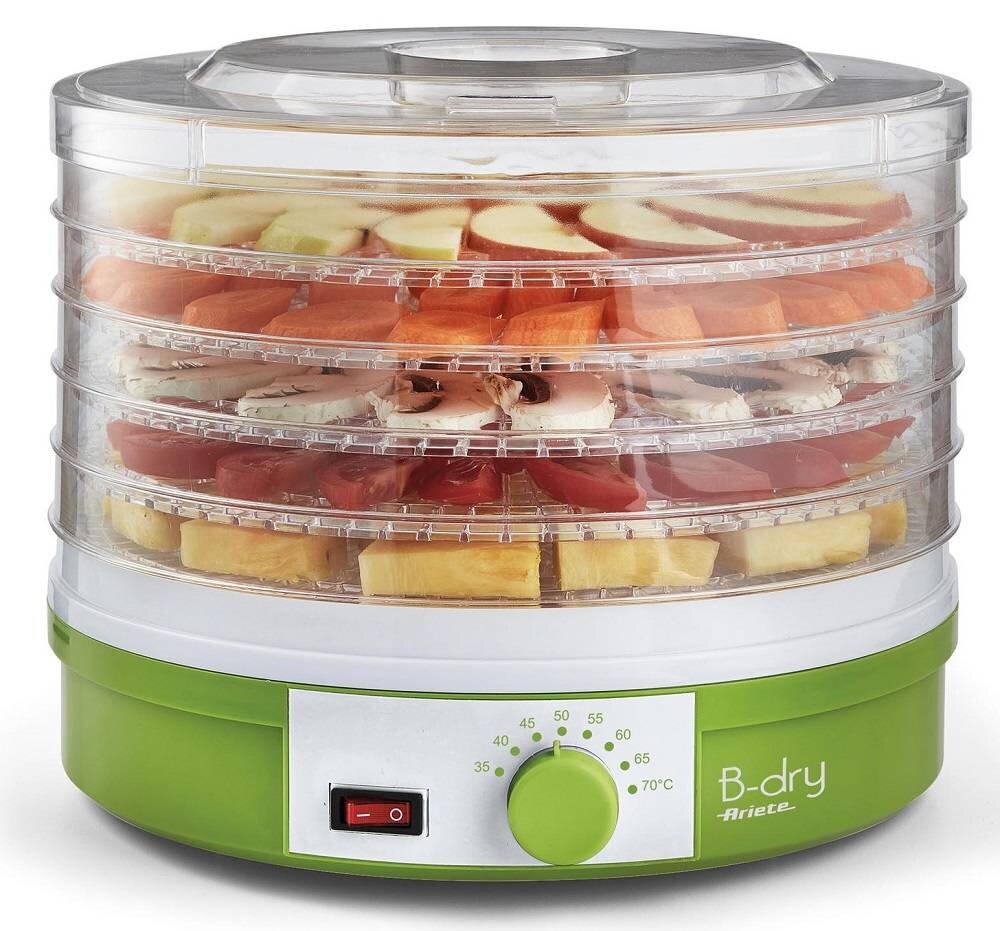 • Příkon 245 W • Nastavitelná teplota od 35 ° C do 70 ° C • Rovnoměrné rozložení tepla • Vhodné pro sušení různých druhů potravin jako ovoce, zelenina, houby, bylinky, maso • Proces sušení zachovává minerály a vitamíny v potravinách • 5 průhledných výměnných vrstev o průměru víka 32 cm • Tlačítko vypnutí / zapnutí