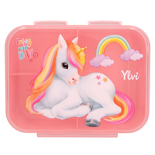 Svačinový box Ylvi, Růžový, s jednorožcem, s přepážkou