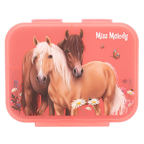 Svačinový box s přihrádkami Miss Melody, Růžový, dva hnědí koně na louce