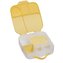 Najdete zde oddělení pro půl krajíce chleba nebo sendvič, pod pohyblivým sendvičovým víčkem je ukrytý chladivý polštářek, který udrží tuto dobrotu déle čerstvou. Pokud pohyblivé víčko odstraníte, máte rázem dostatečně velký prostor pro těstoviny nebo salát. Naprosto jedinečné zpracování víčka krabičky s flexibilním silikonovým těsněním umožní vložit do krabičky celé jablko! Silikonové těsnění pak umožní skladovat v menších odděleních ovoce nebo jogurt (nikoli tekutiny). Jedna z vnitřních "přepážek" má vyjímatelný posuvný rozdělovač, se kterým si tento svačinový box přestavíte podle svých chutí a potřeb. Do krabičky se vejde i wrap nebo banán.