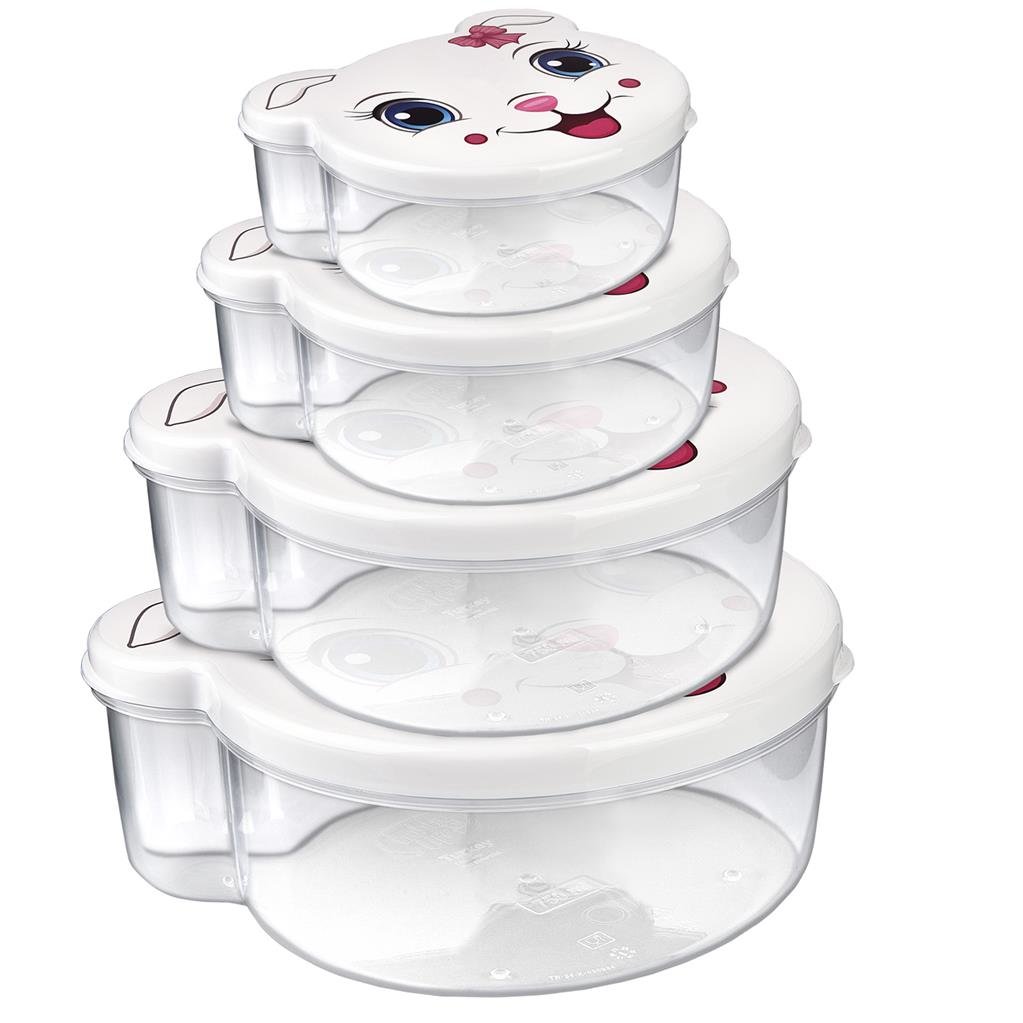 Box KOČKA 4 ks jsou ideálním řešením pro skladování svačiny doma, ve škole či na výletě. Díky čtyřem různým velikostem budete mít vždy po ruce vhodný box na jakýkoliv druh jídla či svačiny.