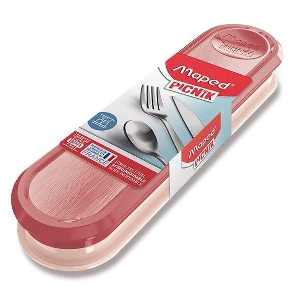 Příbor z nerezové oceli v plastovém pouzdře, obsahuje menší lžíci, nůž a vidličku - délka příboru je 15,5 cm. Pokud je příbor špinavý, lze jej schovat do talíře Maped Picnik Concept Adults. Možno mýt v myčce. číst celé