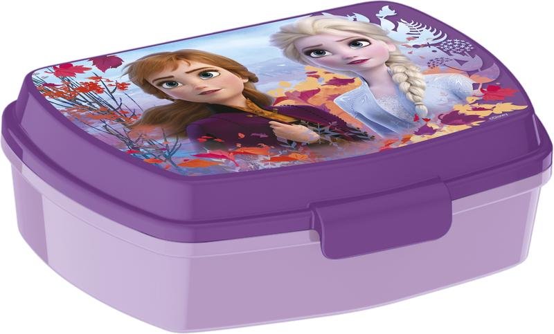 Designový dětský svačinový box s oblíbenou postavičkou "Ledové království". Svačinový box je perfektním doplňkem každého malého školáka. Krabička je dostatečně prostorná a vejde se do ní každá svačina. Díky praktickému uzávěru se nic nevysype. Box není vhodný do mikrovlnné trouby ani myčky na nádobí. Rozměr 17,5 x 14,5 x 6,5 cm.