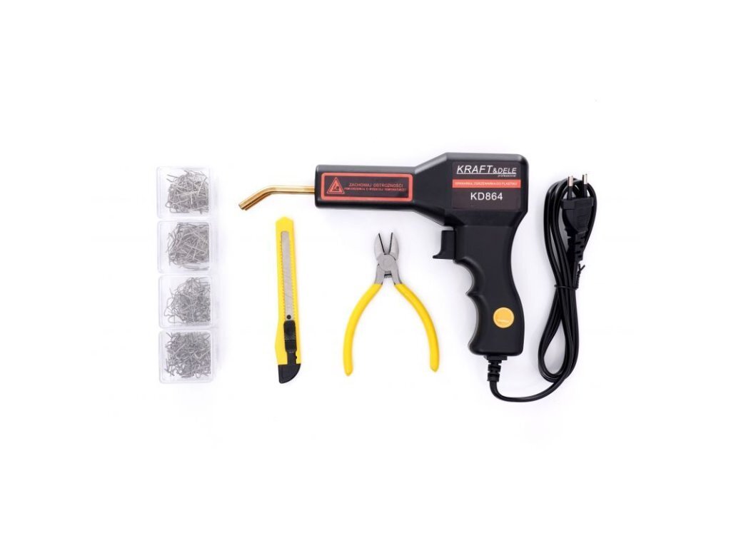 Nepostradatelný nástroj pro každou dílnu nebo karosárnu. Sada je vhodná pro všechny, kteří si chtějí svépomocí opravit rozbité plastové prvky. Spojení poškozených plastových dílců se provádí nahřátím kovových sponek vložených do ramen svářečky - praskliny se tak "sesponkují" pomocí ocelových sponek, které se svářečkou zataví do plastu, přebytečné kovové konce dílů se následně odstřihnou pomocí kleští dodávaných v sadě.