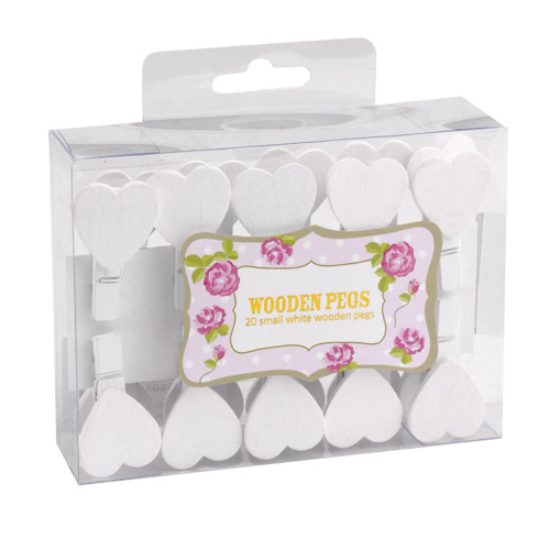 Svatební kolíčky bílé se srdíčkem - 20 ks