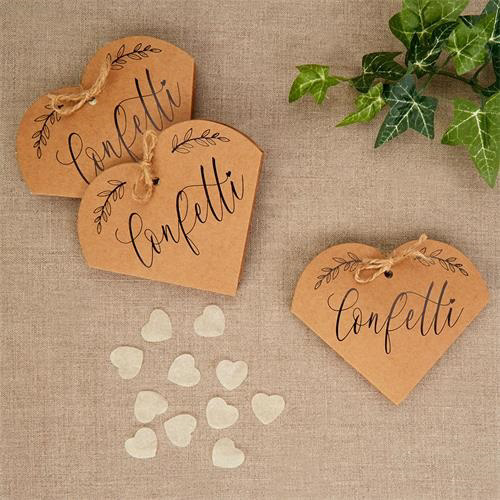 Klasická svatební tradice s těmito pěknými konfety ve tvaru srdce. Nádherné krabičky ve tvaru srdce přicházejí naplněné konfety z látky. Dají se použít na házení, stylové fotografování nebo jako dekorace na stůl. Tyto konfetové boxy s nápisem „Confetti“ ve stylu kaligrafie vytvářejí krásný doplněk k vašemu dni. - Box obsahuje biologicky rozložitelné konfety ve tvaru srdce, které jsou ve tvaru srdce- Stylové převzetí klasické svatební tradice. Balení: 1 ks.