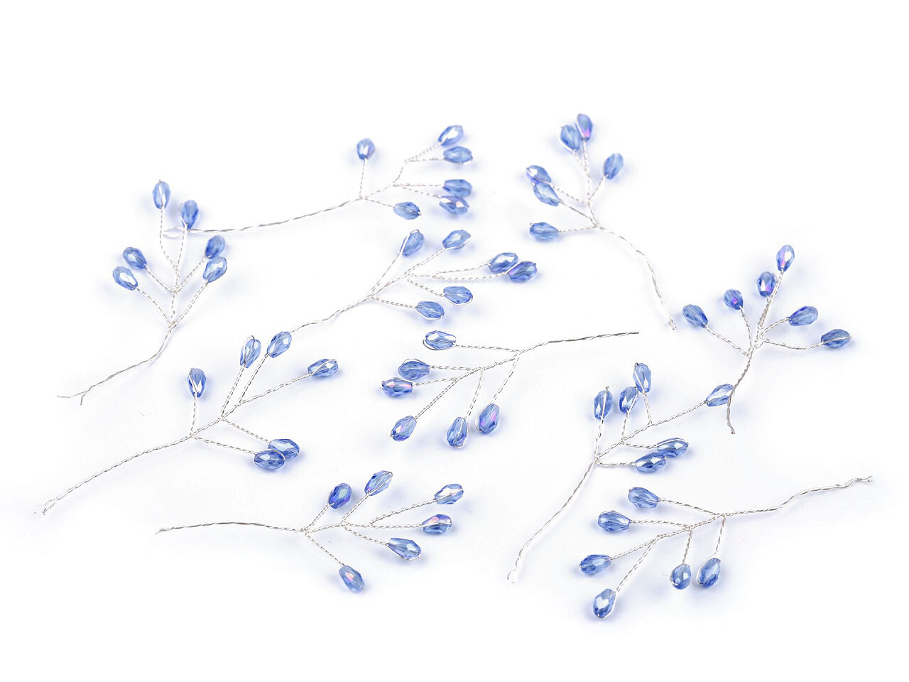 Větvička drátěná s broušenými korálky hand made - 10 ks - 5 sapphire stříbrná