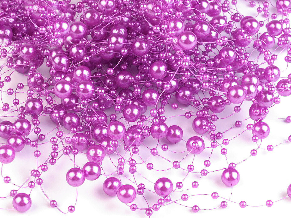 Perly na silonu Ø7 mm délka 130 cm - 12 ks - 39 fialová světlá