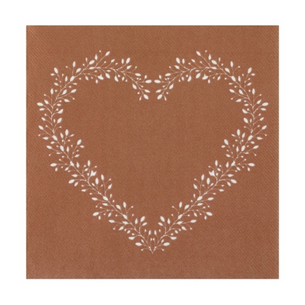 Luxusní ubrousky s motivem srdce, vhodné na svatební dekoraci stolu ale i narozeninové party nebo jinou oslavu. Svou pevností a strukturou dokonale nahrazují textilní ubrousky a jsou ideální ke slavnostním příležitostem. Ubrousky jsou příjemné na dotek a mají skvělé vlastnosti pro skládání, jsou pevné a uvnitř hebké. Zůstává pevný i za mokra. Rozměr: 40 x 40 cm Balení: 12 ks. Materiál: Airlaid 65 gr/sqm