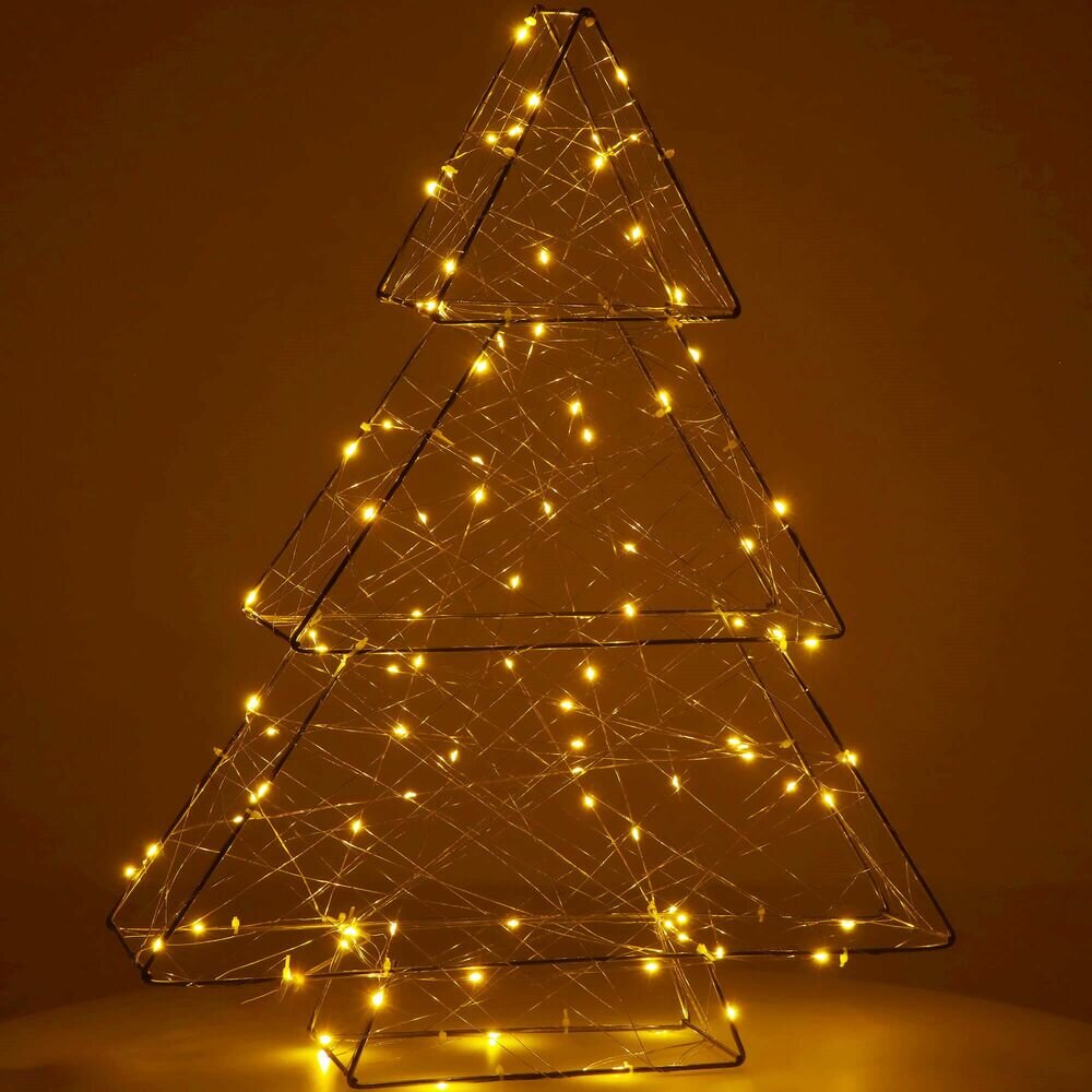 Elegantní svítící vánoční stromeček. Úžasná 3D světelná dekorace vhodná pro vnitřní použití, úsporné nano diody, krytí IP20. Napájení 3xAA, barva teplá bílá. Výška 60 cm, 100 LED, napájecí kabel 29 cm.