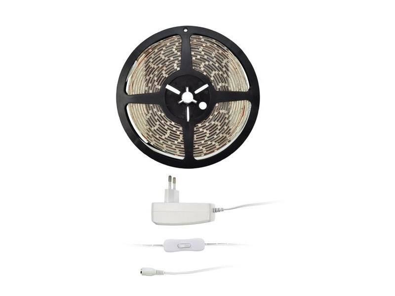 LED světelný pás s testrem, 5m, sada s 12V adaptérem, 4,8W/m, IP20, studená bílá