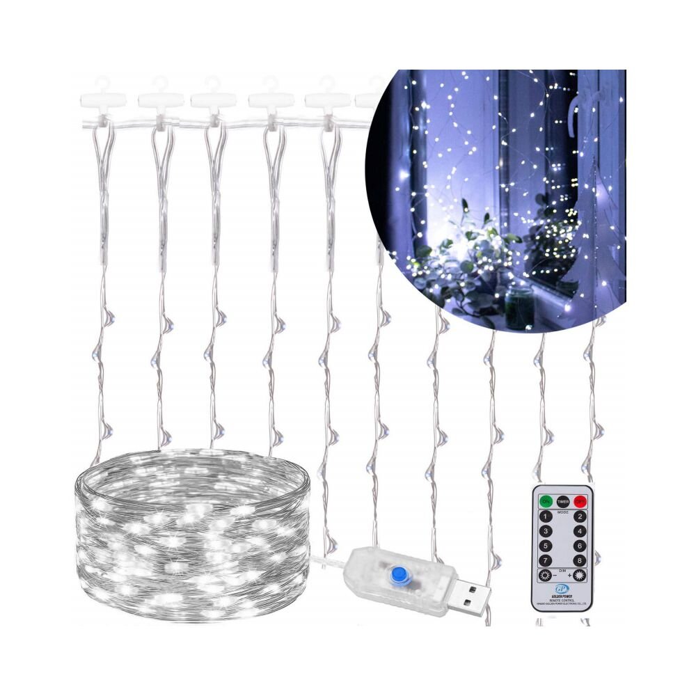 LED Nano světelný závěs - 3x2m, 200LED, 8 funkcí, ovladač, USB, IP44, studená bílá