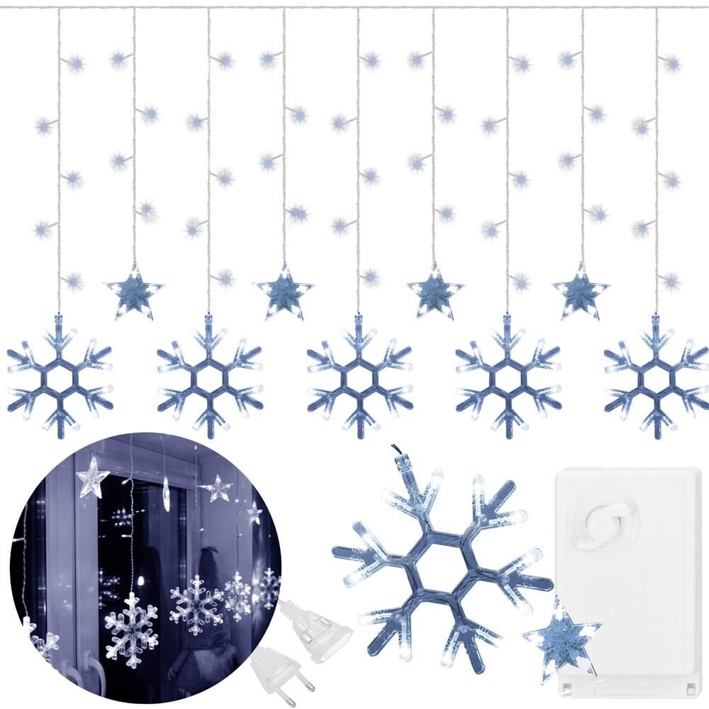 LED závěs Vločky a Hvězdy - 2,5x0,65m, 150LED, 8 funkcí, IP20, studená bílá