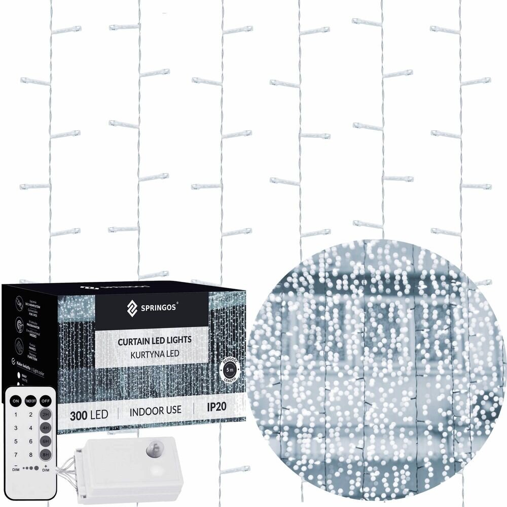 LED světelný závěs - 3x3m, 300LED, 8 funkcí, ovladač, paměť, IP20, studená bílá