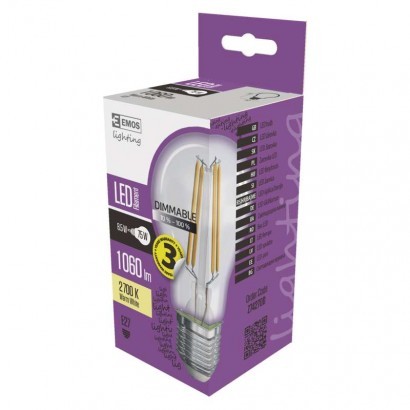 barva světla: teplá bílá|energetická třída: A++|index podání barev (CRI): Ra >80|kategorie/řada: FILAMENT|náhrada za žárovku: 75 W|napětí: 230 V~/50 Hz|patice (uchycení žárovky): E27|počet čipů: 4|počet spínacích cyklů: 15 000|příkon: 8,5 W|prodejní obal: 1 ks, krabička|rozměr: 60 × 110 mm|startovací doba: 0,1 s|stmívatelná: ano|světelná účinnost: 125 lm/W|světelný tok/svítivost: 1 060 lm|technologie: LED|teplota chromatičnosti: 2 700 K|tvar: Classic A60|typ čipů: COB|účiník: 0,5|úhel vyzařování: 360°|záruční doba: 3 roky|životnost: 25 000 hodin