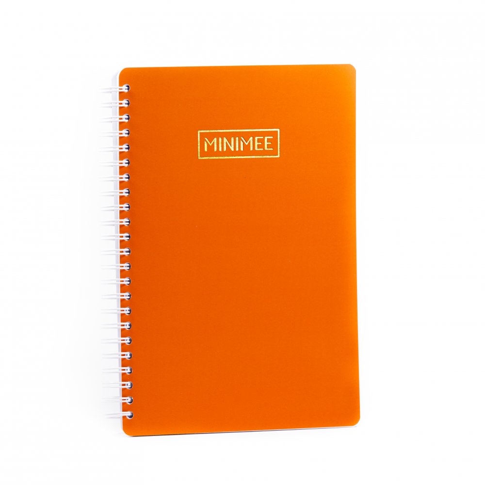 Originální tečkovaný zápisník A5 MINIMEE s luxusním zlatým prvkem a sametovou obálkou v pomerančové barvě, který potěší všechny pisálky a milovníky bullet journalu či scrapbookingu.