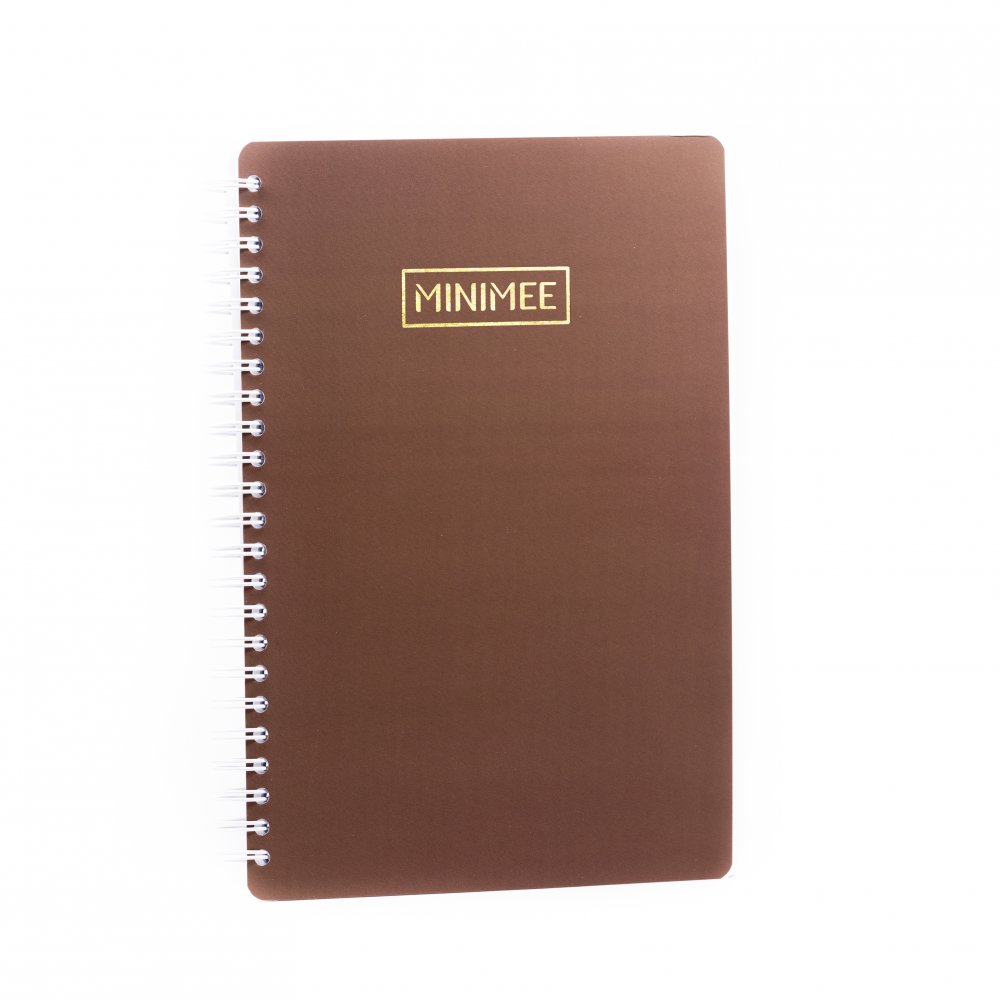 Originální tečkovaný zápisník A5 MINIMEE s luxusním zlatým prvkem a sametovou obálkou čokoládové barvy, který potěší všechny pisálky a milovníky bullet journalu či scrapbookingu.